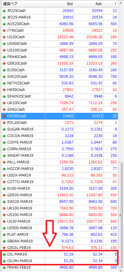 気配値にOILが表示されます。