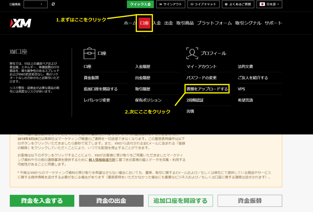 以上が、XMの口座開設時に、